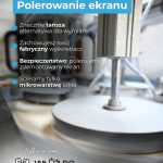 Polerowanie: Specjalistyczna maszyna za pomocą płynów i tarcz ściera uszkodzoną mikrowarstwę szkła.